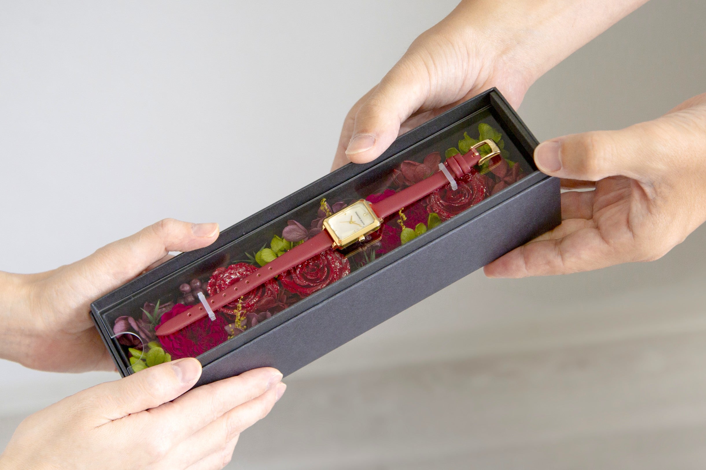 高級プリザーブドフラワー「AMOROSA®」と、シチズン社MIYOTAムーブメント採用の国産ウォッチ。