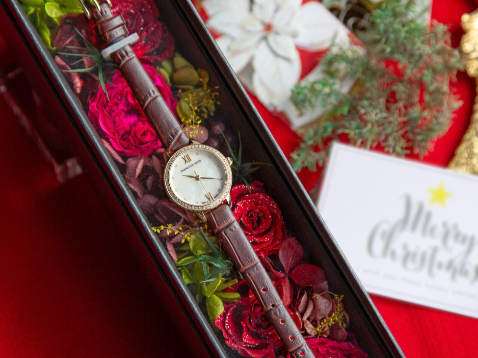 そんな時に選ばれているのが、花と時計のギフトセット「ダイヤモンドローズ」