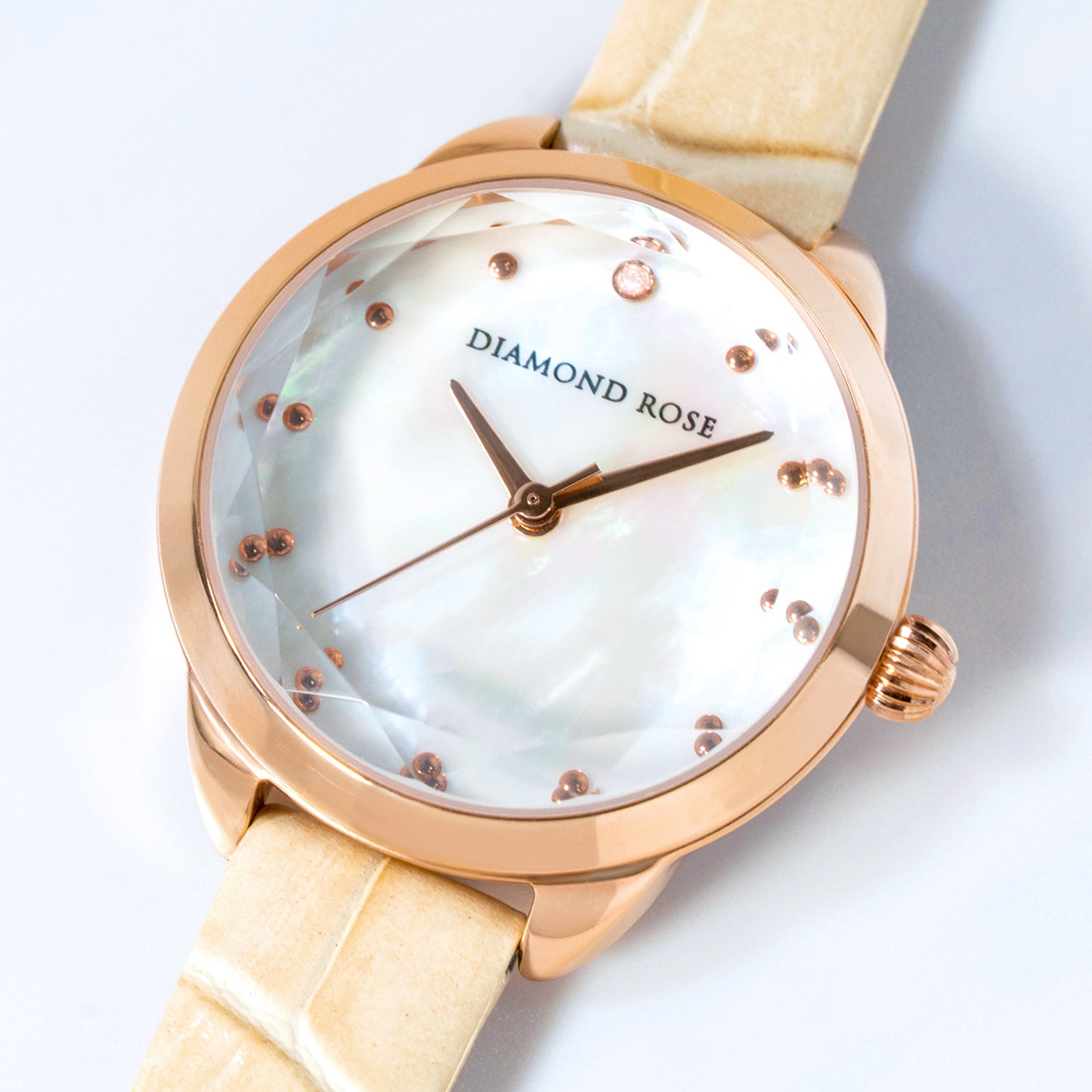 マーザーオブパールの⽂字盤/ VSクラス天然ダイヤモンド使⽤/ダイヤモンドカットガラス/日本製