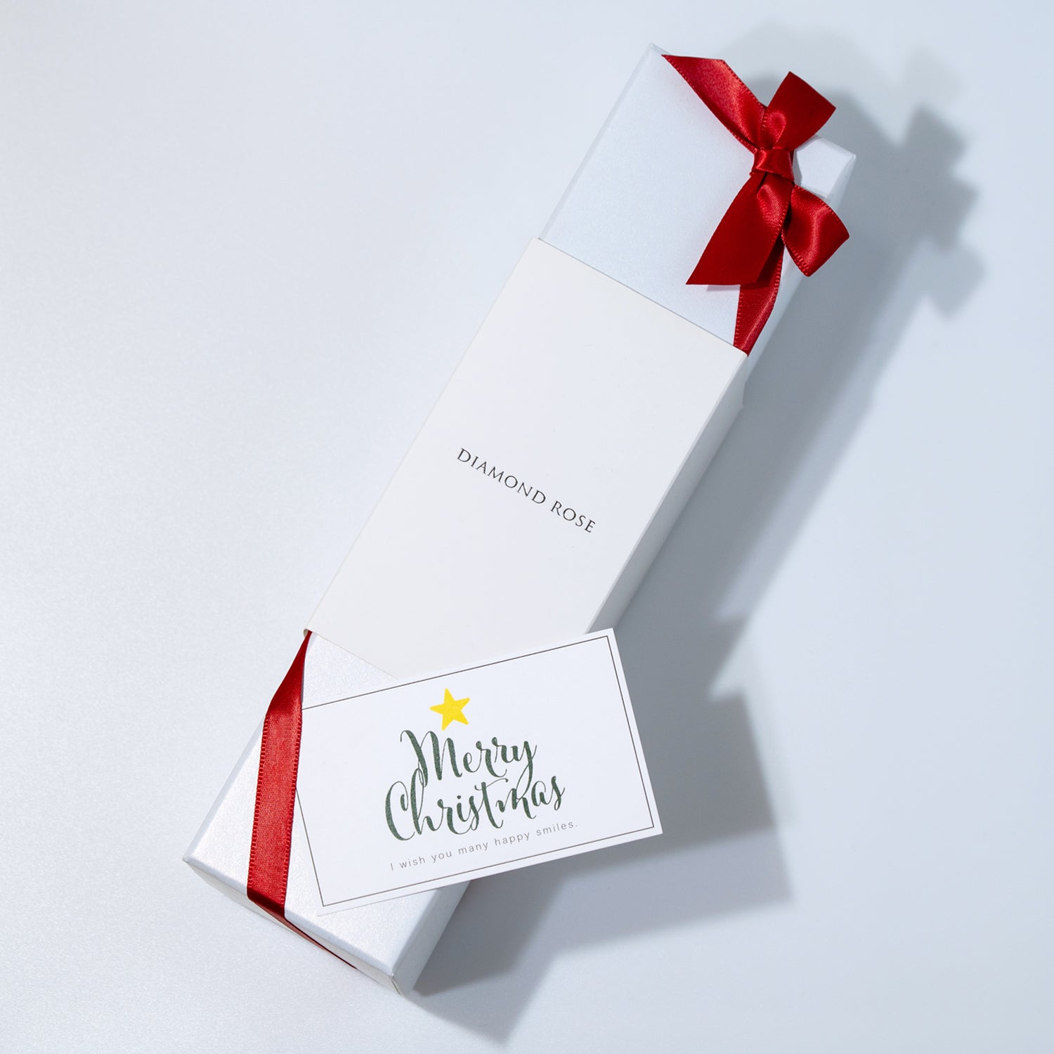 『MerryChristmas』以外にも『I LOVE YOU』『Thank you』『いつもありがとう』『おめでとう』などさまざまなメッセージカードを用意しています。DIAMOND ROSEはギフトに特化したブランドなので、腕時計からギフトバックまでをトータルコーディネート。