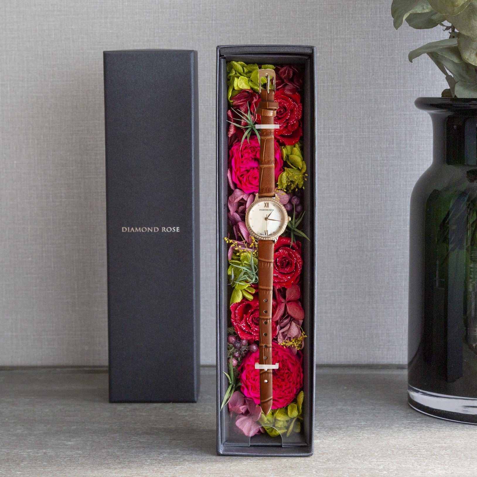 日本製の腕時計と最高級プリザーブドローズの贅沢な融合