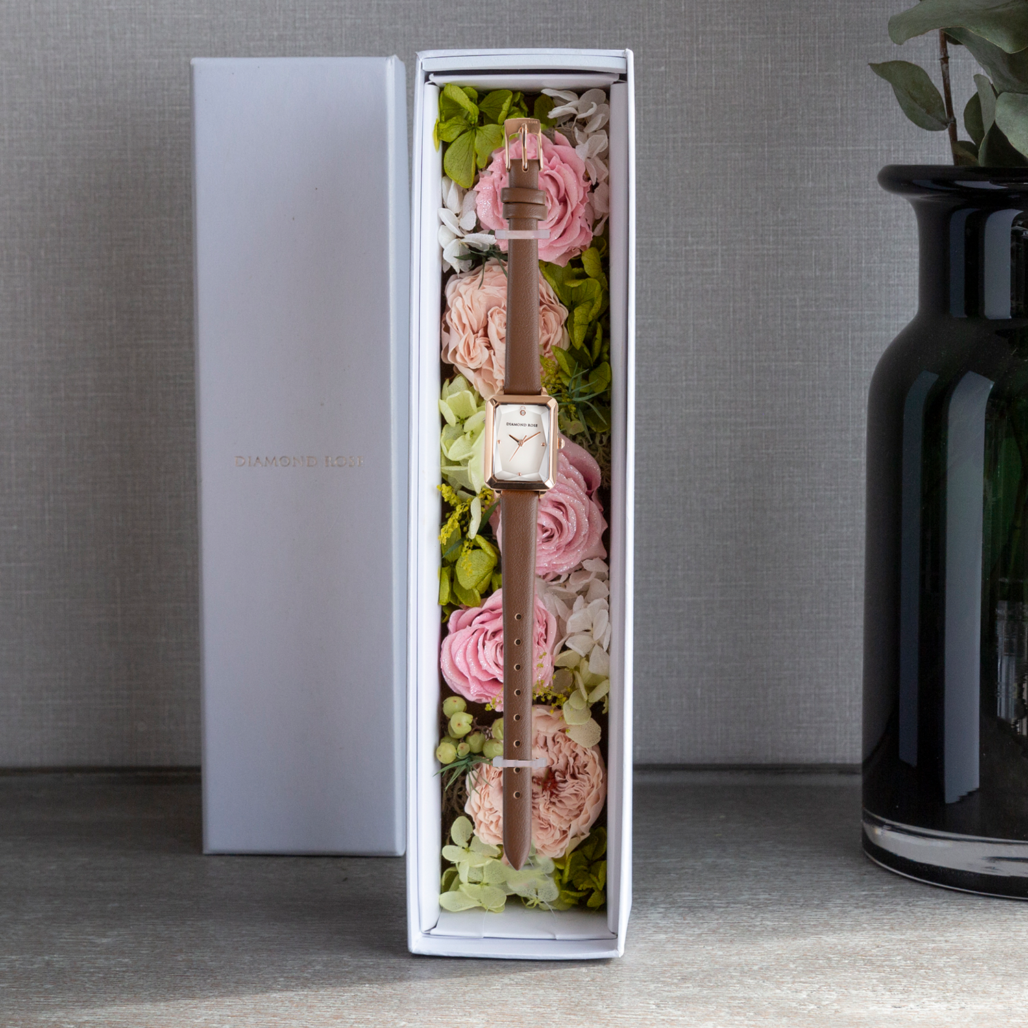 日本製の腕時計と最高級プリザーブドローズの贅沢な融合