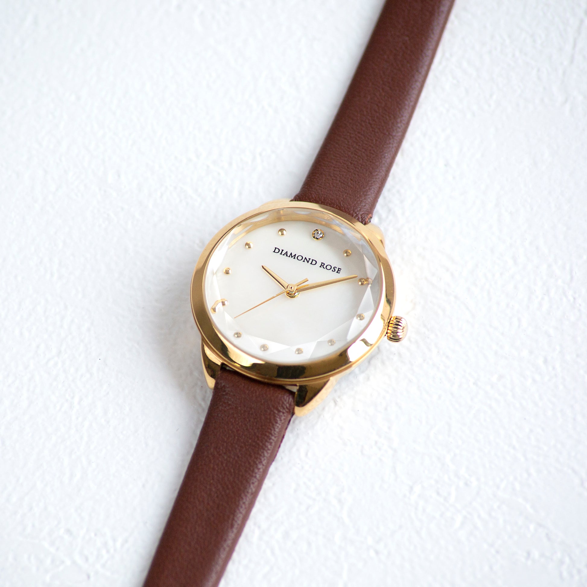 マーザーオブパールの⽂字盤/ VSクラス天然ダイヤモンド使⽤/ダイヤモンドカットガラス/日本製 |