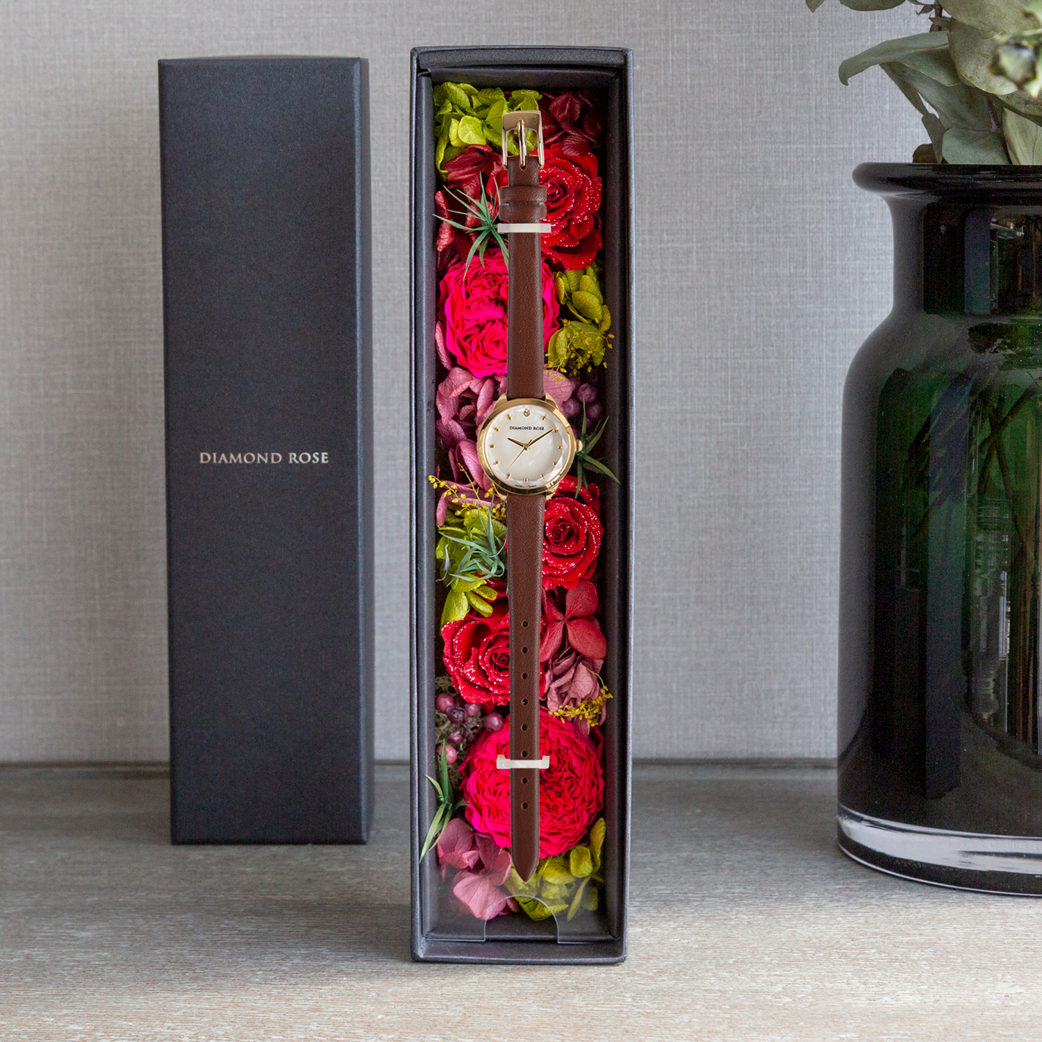 日本製の腕時計と最高級プリザーブドローズの贅沢な融合