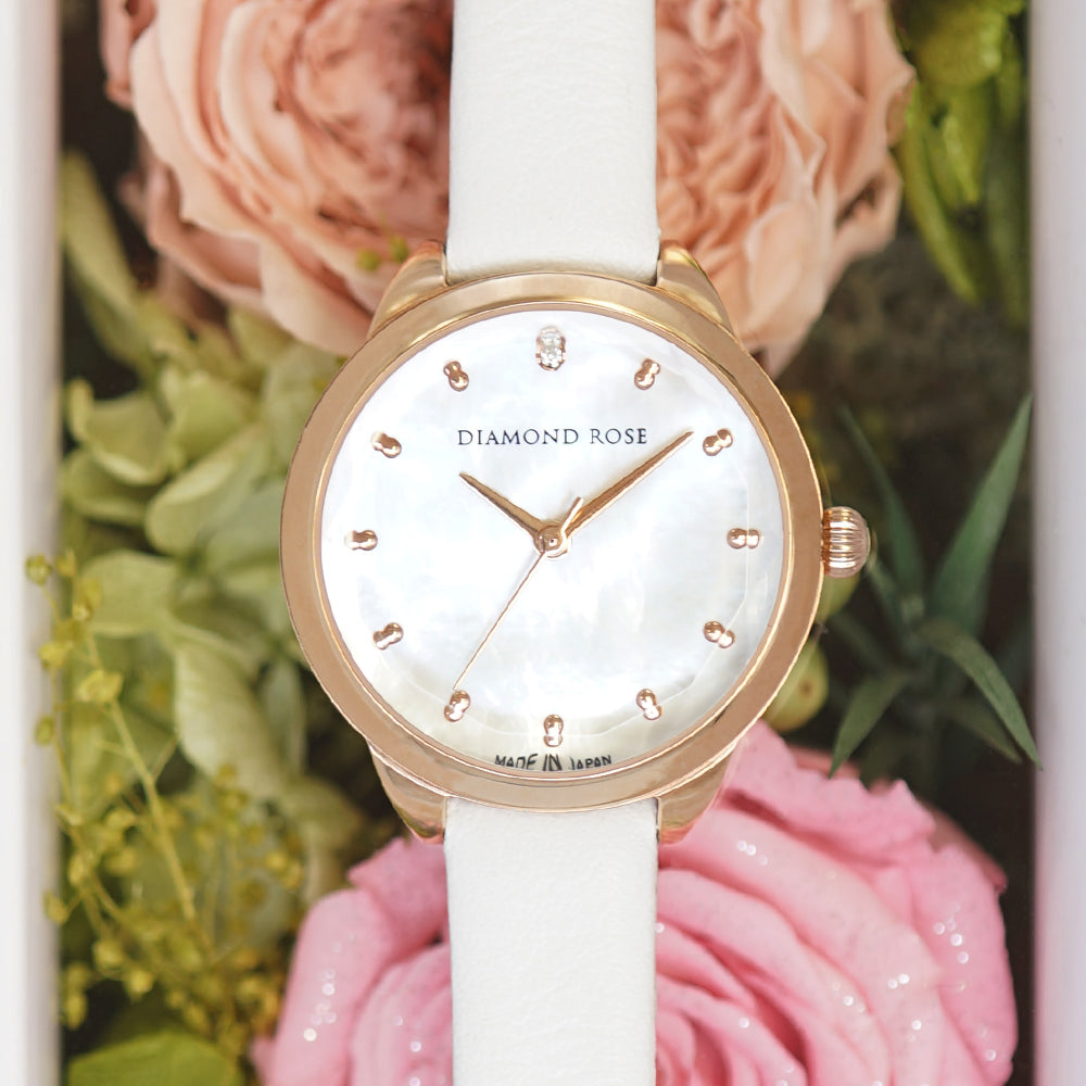 マーザーオブパールの⽂字盤/ VSクラス天然ダイヤモンド使⽤/ダイヤモンドカットガラス/日本製