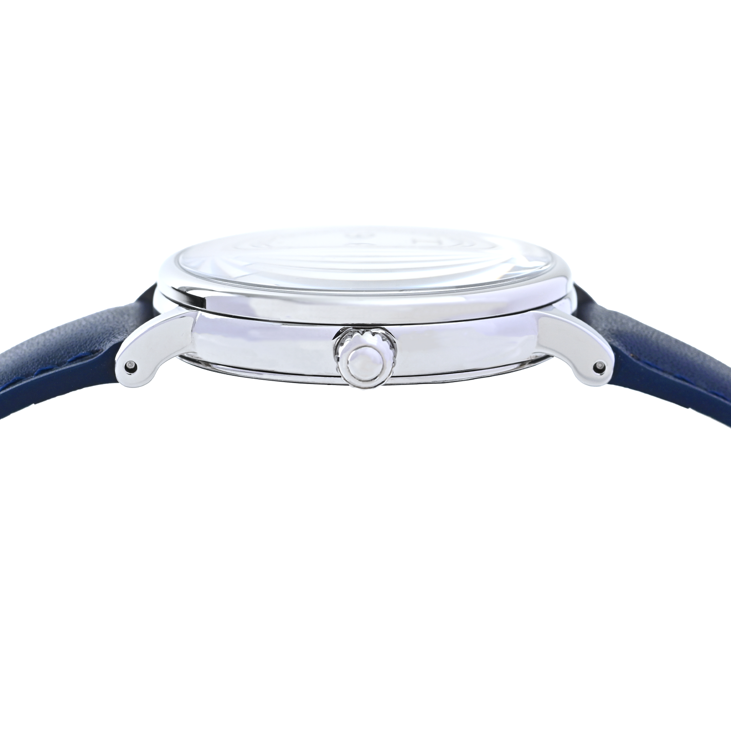 ほどよい存在感の36mmケースに上質なレザーベルトを合わせたモデル。 クラシックなスモールセコンドが文字盤に静けさとリズムをもたらし、知的で洗練された印象を演出します。 しなやかなレザーの質感が手元にあたたかみを添え、使い込むほどに深まる風合いも魅力のひとつ。 ビジネスにもカジュアルにも対応できる、落ち着きのある上品なデザインです。